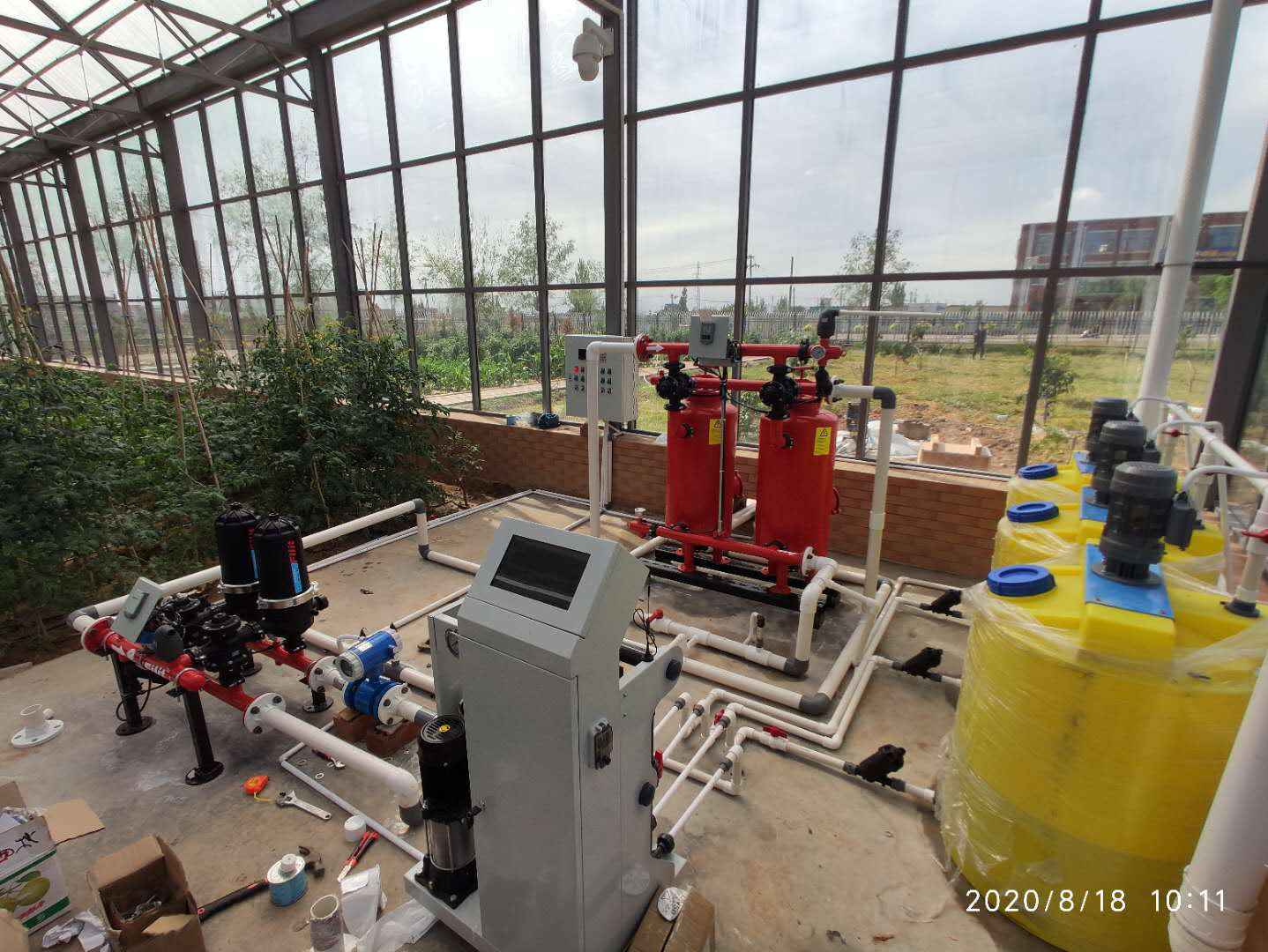 項目內(nèi)容:系統(tǒng)包括智能水肥一體機、自動反沖洗砂石過濾器、自動反沖洗疊片過濾器、南方管道循環(huán)增壓泵、智能灌溉控制柜、流量監(jiān)測、水肥電導(dǎo)率監(jiān)測、水肥PH監(jiān)測、溫室溫濕度光照監(jiān)測。