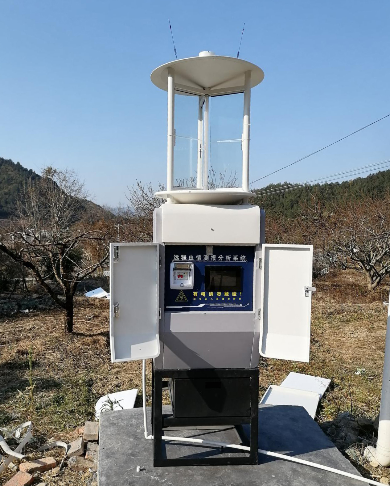 項目內容:已投入病蟲害監測設備2套,設備具有遠程蟲情測報分析系統,兼容病蟲測防系統及植保物聯網系統;實現蟲體遠紅外自動處理、拍照上傳、蟲體自動識別、整燈自動運行等功能;在無人監管的情況下,能自動完成誘蟲、殺蟲、拍照、上傳、蟲體自動分析、排水等系統作業。該燈由GPRS上傳數據,通過物聯網平臺,最后由手機、計算機等終端設備呈現測報系統的所有數據,以便于更直觀的對昆蟲的發生、發展進行監測、分析和預測,為農業現代化提供服務,滿足蟲情測報、采集標本的需要(該設備連接大數據分析庫,可以自動識別蟲體種類和數量)。