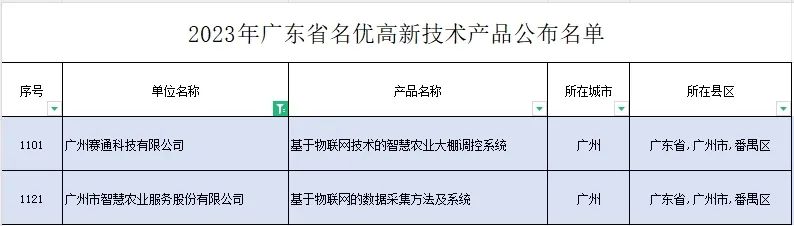 12月5日,廣東省高新技術(shù)企業(yè)協(xié)會(huì)公布了“2023年廣東省名優(yōu)高新技術(shù)產(chǎn)品”正式名單。其中,經(jīng)過(guò)技術(shù)水平、知識(shí)產(chǎn)權(quán)、市場(chǎng)影響力、環(huán)保情況和企業(yè)獲得榮譽(yù)等五項(xiàng)指標(biāo)的遴選,廣州市智慧農(nóng)業(yè)服務(wù)股份有限公司“基于物聯(lián)網(wǎng)的數(shù)據(jù)采集方法及系統(tǒng)”及子公司廣州賽通科技有限公司“基于物聯(lián)網(wǎng)技術(shù)的智慧農(nóng)業(yè)大棚調(diào)控系統(tǒng)”成功入選!