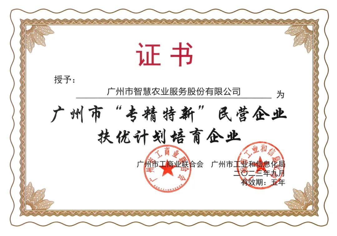 9月,廣州智慧農業入選廣州市“專精特新”民營企業扶優計劃培育企業