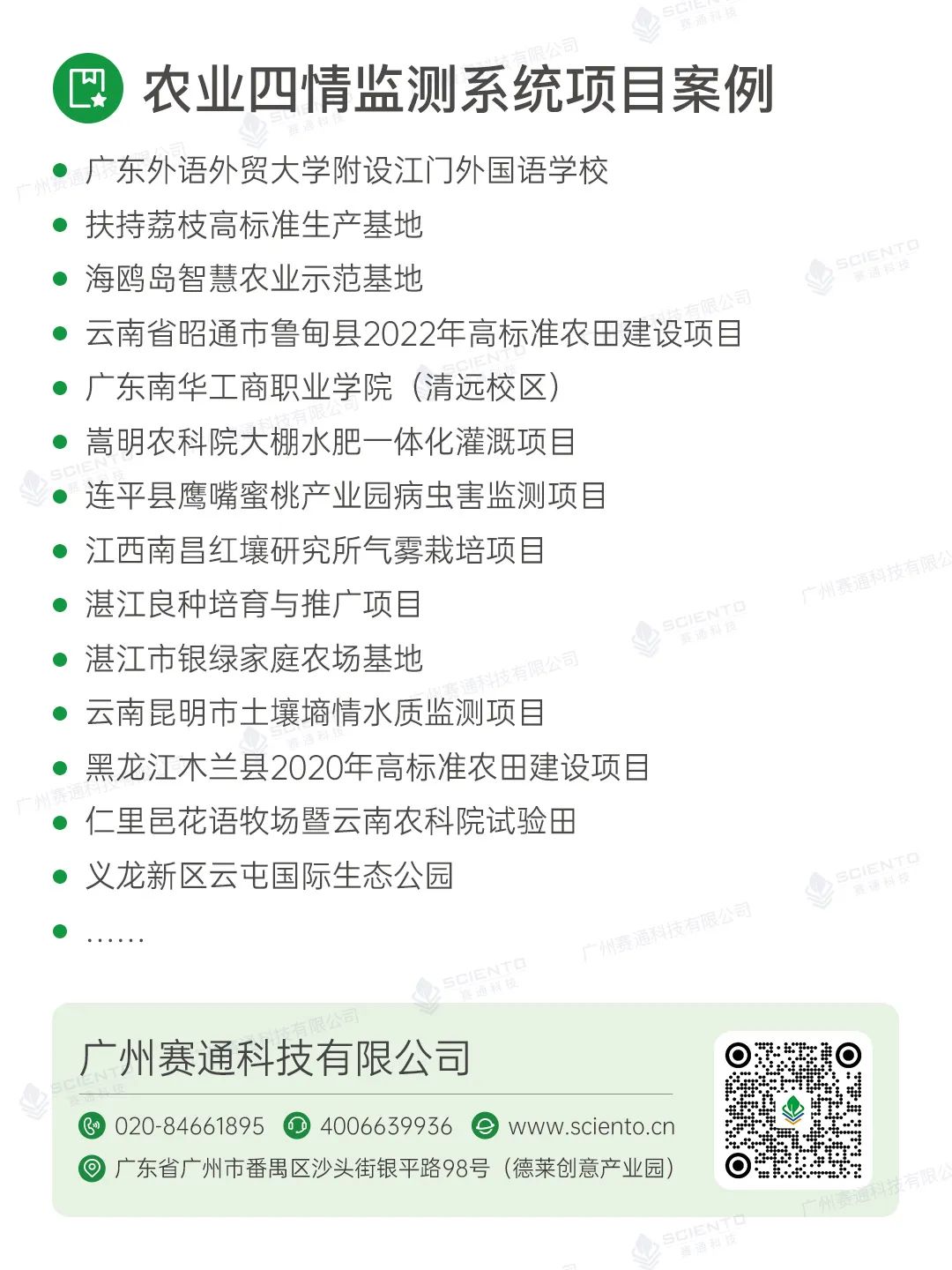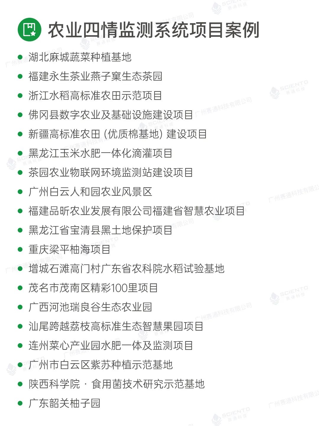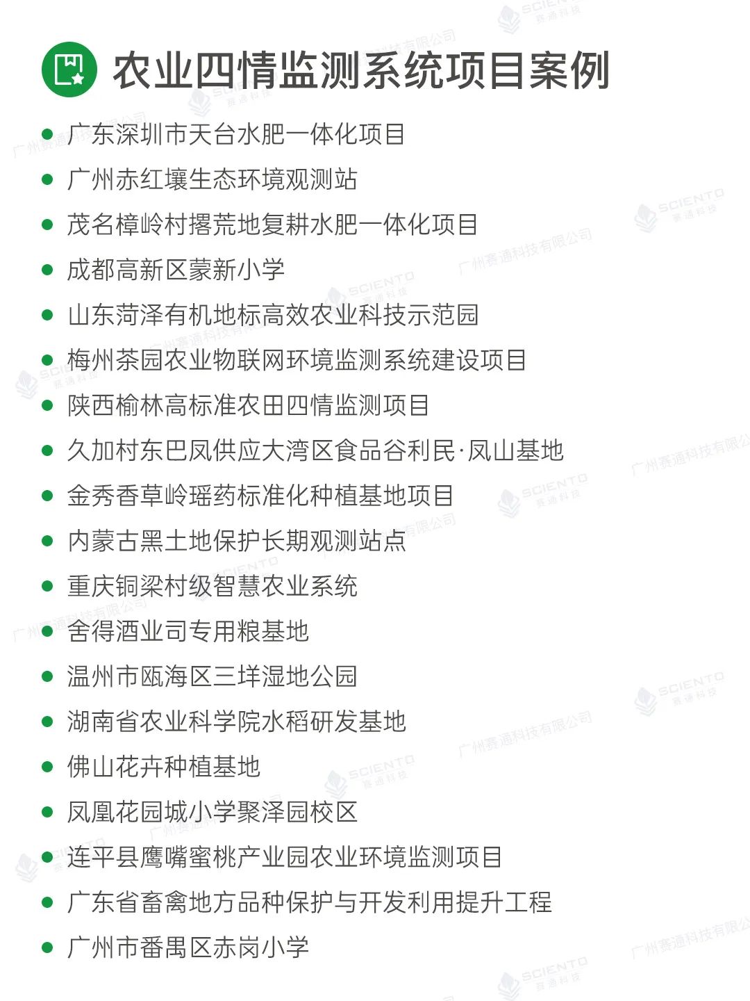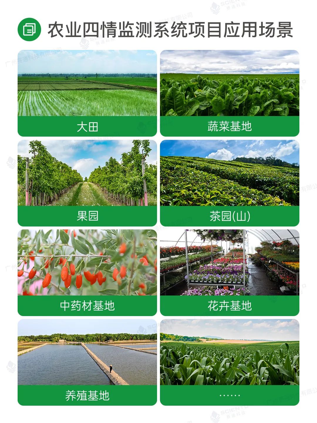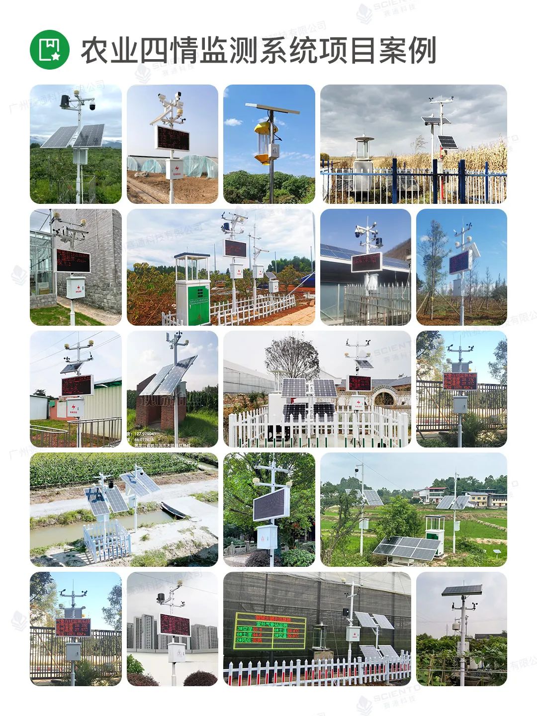 廣州賽通科技有限公司自主研發農業四情監測系統解決方案,搭配賽農耘®智慧農業管理平臺實現實時苗情、墑情、蟲情和災情監測感知,構建作物精準決策的數據支撐。