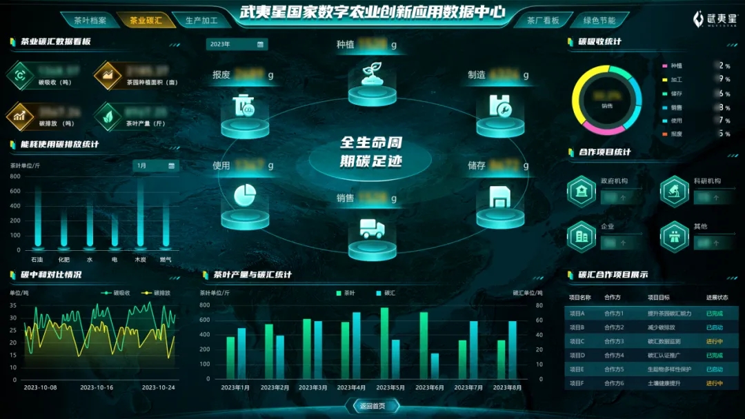 茶園碳中和監(jiān)測系統(tǒng):統(tǒng)計(jì)茶葉種植、加工、儲存、銷售、使用、報(bào)廢的全生命周期碳吸收,與石油、化肥、水、電、木炭、燃?xì)獾饶芎氖褂玫奶寂欧牛瑯?gòu)建茶產(chǎn)業(yè)碳中和監(jiān)測系統(tǒng)。