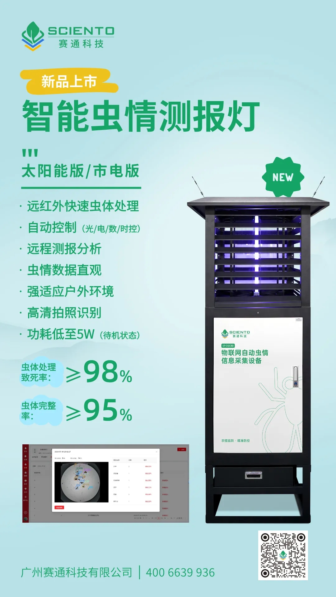 當農田蟲情監測還在依賴“人工巡查+毒瓶殺蟲”的傳統模式,當林業蟲害預警因數據滯后錯過最佳防控期,廣州賽通科技有限公司重磅推出智能蟲情測報燈新品,為農情防控注入智能新動力!